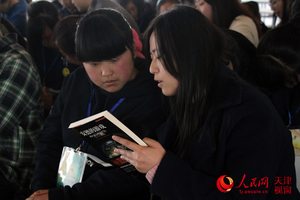 渣打科营中心的志愿者与参加冬令营的孩子分享好书。(摄影:周君)