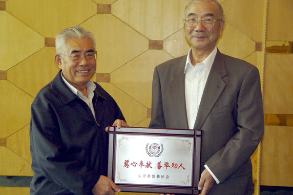 陆焕生会长接受天津市“慈善之星”张森仪先生捐赠善款100万元设立“慈善助孤基金”